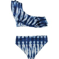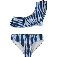 Nikki is an asymmetrical bikini in blue with a tie-dye print. The bikini top has an all-around ruffle edge in two layers, which creates a lovely wave effect. Nikki has a good fit with good coverage. Molo's swimwear has 50+ UV protection. The product is CE-marked and tested according to standard EN-13758-1.
