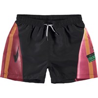 Niko is a pair of sporty swim trunks in black with a print of surboards on the sides. Niko has an elastic waist for a good, comfortable fit. Wear the trunks with a matching t-shirt. Molo''s swimwear has a UV protection of 50+. The product is CE-marked and tested according to standard EN-13758-1.