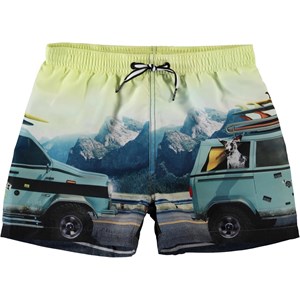 The surfboards have been mounted on the car and a road trip is in the air on these Niko swim trunks. If you want to have fun, then join the adventure. Niko has an elastic waist for a good, comfortable fit. Wear the trunks with a matching t-shirt. Molo''s swimwear has a UV protection of 50+. The product is CE-marked and tested according to standard EN-13758-1.