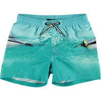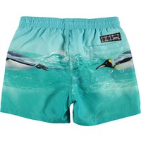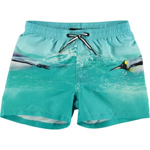 Dive deep into the turquoise water and join the fast swimming penguin on the Niko shorts. They have an elastic waist with ties which makes them easy to move around in. Wear the swim trunks with a matching t-shirt. Molo's swimwear has 50+ UV protection. The product is CE-marked and tested according to standard EN-13758-1.