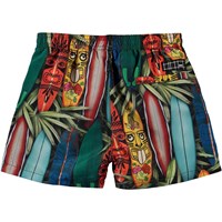 Niko is a pair of sporty swim trunks with tiki-inspired surfboards. Niko has an elastic waist for a good, comfortable fit. Wear the trunks with a matching t-shirt. Molo''s swimwear has a UV protection of 50+. The product is CE-marked and tested according to standard EN-13758-1.
