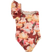 Nitt is Molo’s new asymmetrical swimsuit with a single sculptural strap with a lovely laser cut ruffle edge that keeps its shape and dries as quickly as the rest of the suit. This Nitt is in a beautiful print with iris flowers in shades of red. Molo's swimwear has a UV protection of 50+. The product is CE-marked and tested according to standard EN-13758-1.