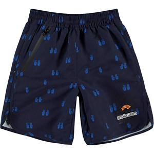 Nox is Molo’s new pair of comfortable swim trunks with a lot of great details. Nox has a loose fit in a midi length with pockets that have visible zippers. It has small vents at the sideseams to give it a relaxed look. This pair is in dark blue with a blue drawing of hands, making a peace sign. Molo's swimwear has a UV protection of 50+. The product is CE-marked and tested according to standard EN-13758-1.